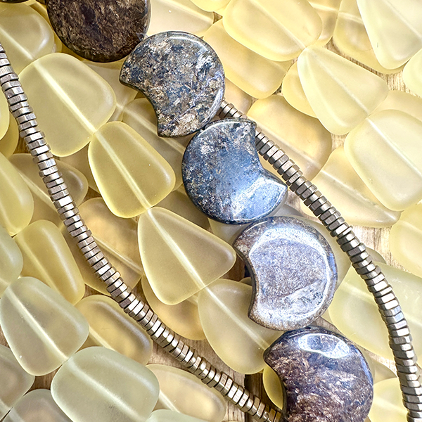 Southwest Summer Nights Statement Bracelet: Create a bold and beautiful statement bracelet inspired by warm desert tones and glowing metallic accents. This workshop features a straightforward stringing technique that lets the beads shine while showing how thoughtful spacing and accents can elevate a simple design.