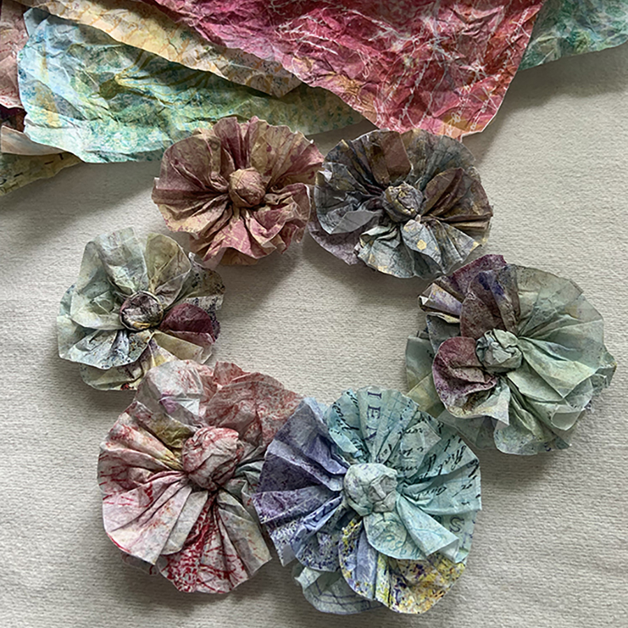 Wrinkled Rice Paper Flowers: In this creative workshop, Rebekah will teach a very simple technique for creating beautifully wilted flowers using rice paper, tissue, or napkins. You’ll learn how to add natural-looking texture and dimension with minimal tools, making this an easy and versatile technique for a wide variety of projects. As a bonus, Rebekah will also show you how to create a beautiful envelope to store die cuts, embellishments, and all your creative treasures. This class is beginner-friendly and perfect for adding soft, organic elements to your mixed-media and paper projects.