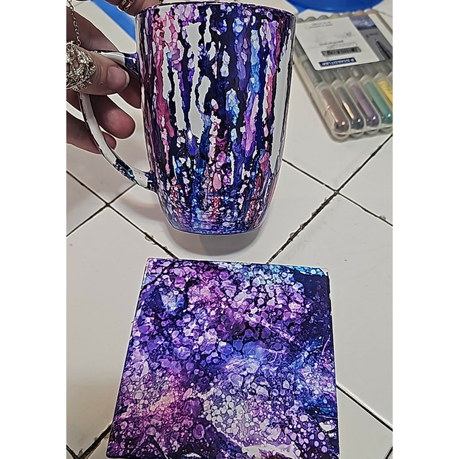 Alcohol Ink Coasters & Decorative Mug: Explore the beauty of alcohol ink in this creative and relaxed class. You will use fluid inks to design colorful coasters and a decorative mug while learning simple techniques to create unique patterns and finishes. This class is all about experimenting, having fun, and creating functional pieces that are perfect to enjoy or share as gifts.