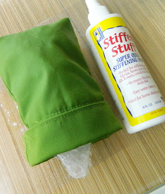 Canvas Corps Saggy Baggy bags are just perfect to make those easy and quick fabric vases with Stiffen Stuff spray. The spray bottle is huge and you can make dozens of bags in different colors with one single 8 OZ. bottle.The canvas/burlap flowers are the great add- ons for those bags and all you need is to embellish them to your style with more canvas, burlap, lace or other products. Once dry- the fabric vase is self standing and you can get your favorite shape while it’s still half wet.