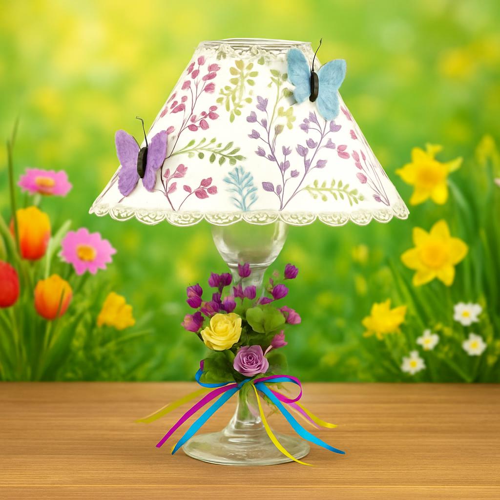 Light up your home with the charm of spring! This unique lamp features a handcrafted paper shade adorned with lovely floral patterns, perched on a stylish champagne flute base. Its soft, inviting glow creates a warm ambiance, making it the perfect addition to any room longing for a touch of nature.
