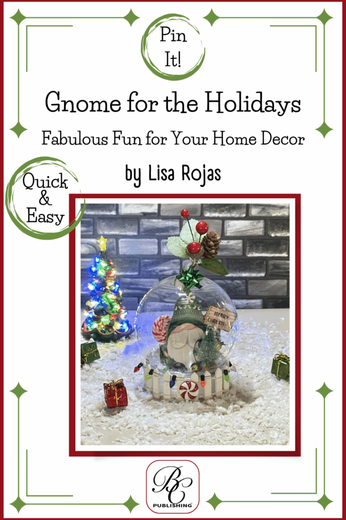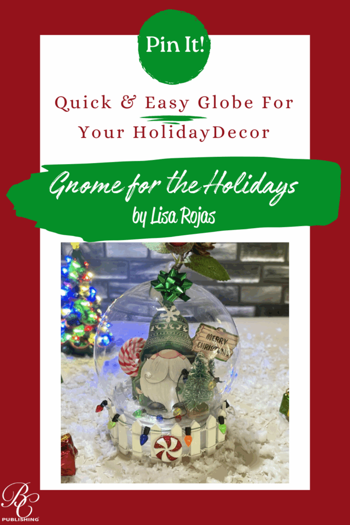 This gnome globe was so much fun to create! I used a wood gnome ornament and some miniature embellishments. Then, using my glue gun, I adhered everything inside the globe. It was so simple and would be a fun project with your kids or grandkids. I hope you give it a try. Crafty hugs, Lisa~