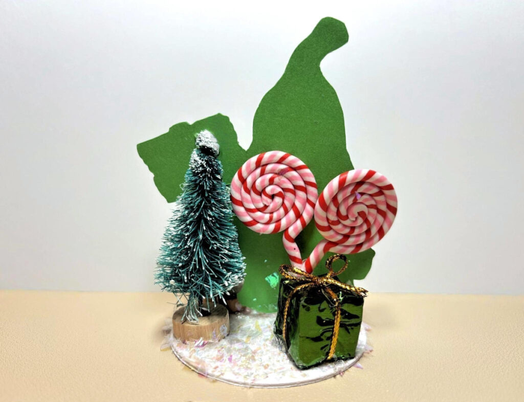 - Miniature Embellishments: Trees, Packages, Christmas Lights, Lollipops, Bow