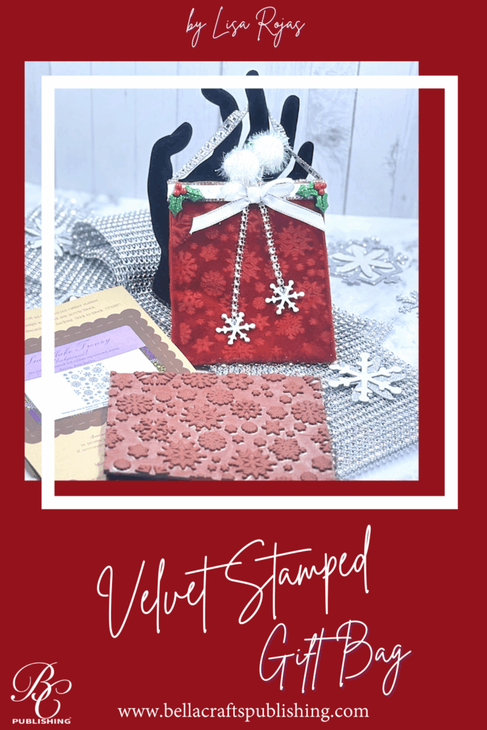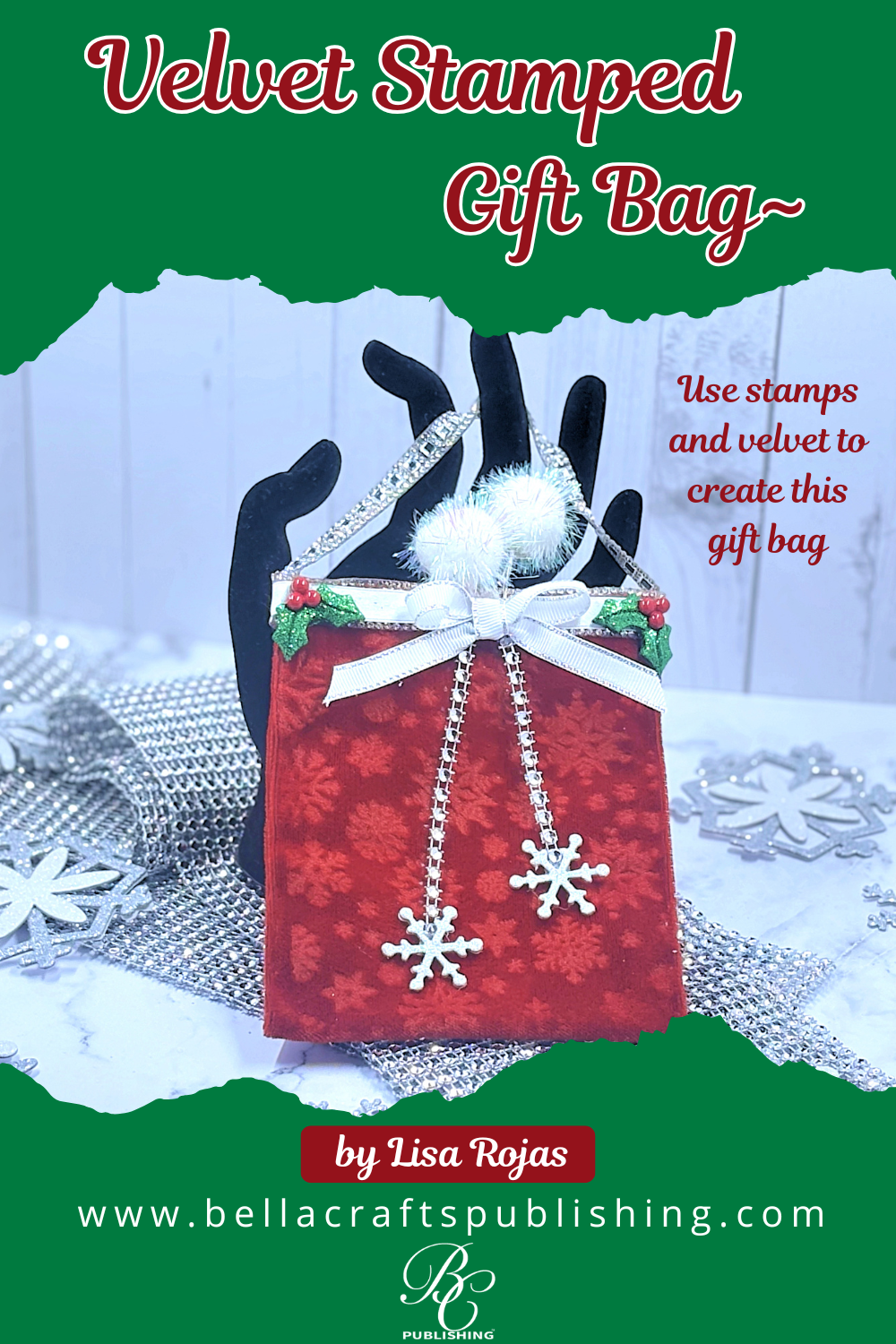 This quick and easy gift bag is absolutely perfect for your holiday gift giving. All you need is some nice velvet, a stamp, and an iron. Velvet Stamping has been around since the 90’s but it never get old! You can catch my video for this project on our YouTube Channel Crafty hugs, Lisa~