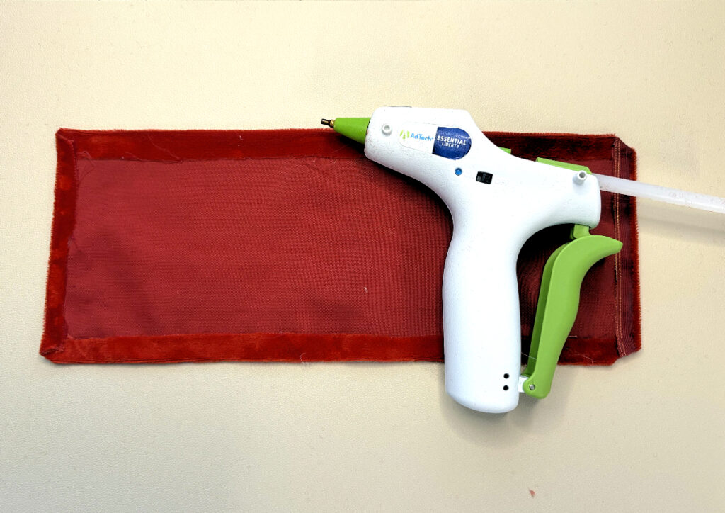 Run a strip of glue on the long sides of the fabric and fold it together.